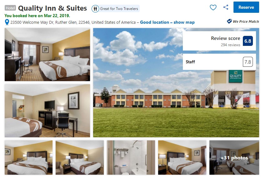 I used Booking.com and found a hotel in Ruther Glen, VA about 10 miles from the park. I was #SUPEREXCITED, I thought $127 for a two-night stay was a steal.